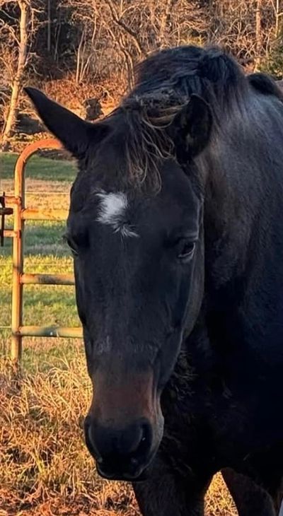 Mojo is half Percheron and half Morgan. He is very sweet but also a very talented dressage horse. In 2023, one of our young students won the Central Tennessee Dressage Association year end championship in her division. He is a big boy at 16.3 hands and has a big personality. When he is not being shown, he teaches lessons and helps our students learn the finer points of dressage.