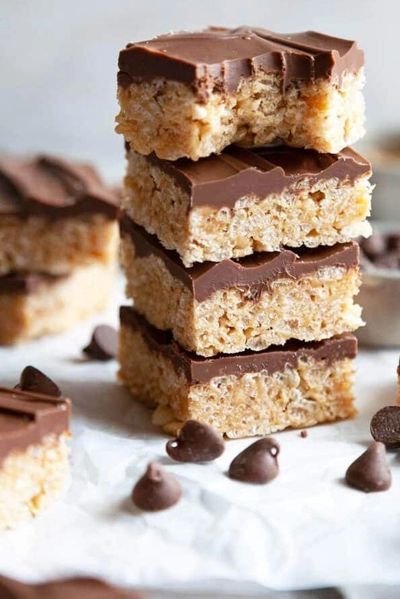 In the microwave, combine about 1 1/2 cups of butterscotch chips and 1 1/2 cups chocolate chips until melted. Once melted, spread onto rice crispy mixture and let sit until hardened.
